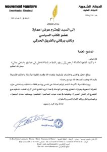 وفي ما يلي نص تعزية الأمين العام للحركة الشعبية محمد أوزين: