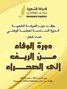 تعقد الحركة الشعبية،يوم السبت المقبل (6 دجنبر2025)بالحسيمة، الدورة السادسة لمجلسها الوطني،تحت شعار “دورة الوفاء من الريف إلى الصحراء”.
